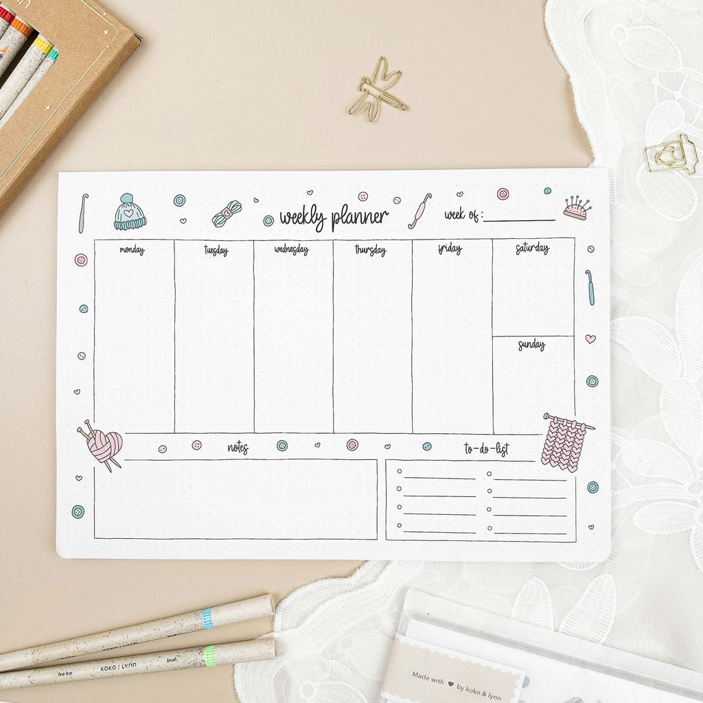 Weekly Planner Pad - A4 - Knitting - 100% recycled paper - 50 pages